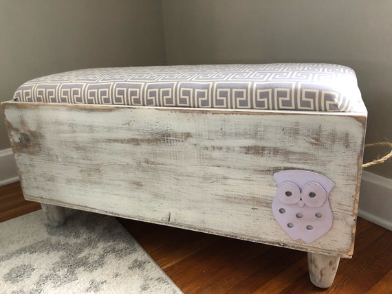 Large Distressed White Owl Toy Box Storage Bench Kids Seat
